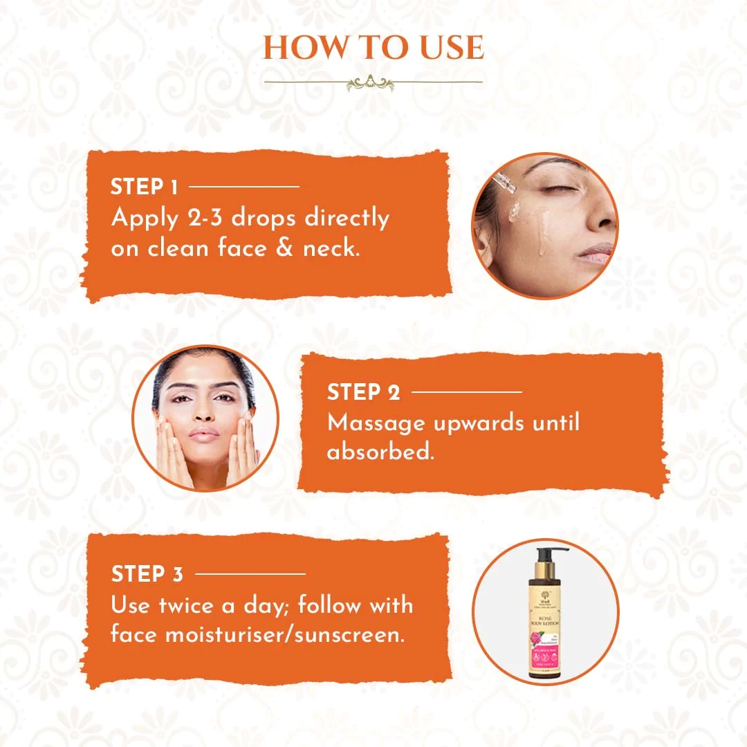 Apply 2-3 drops directly on a clean face and neck.
