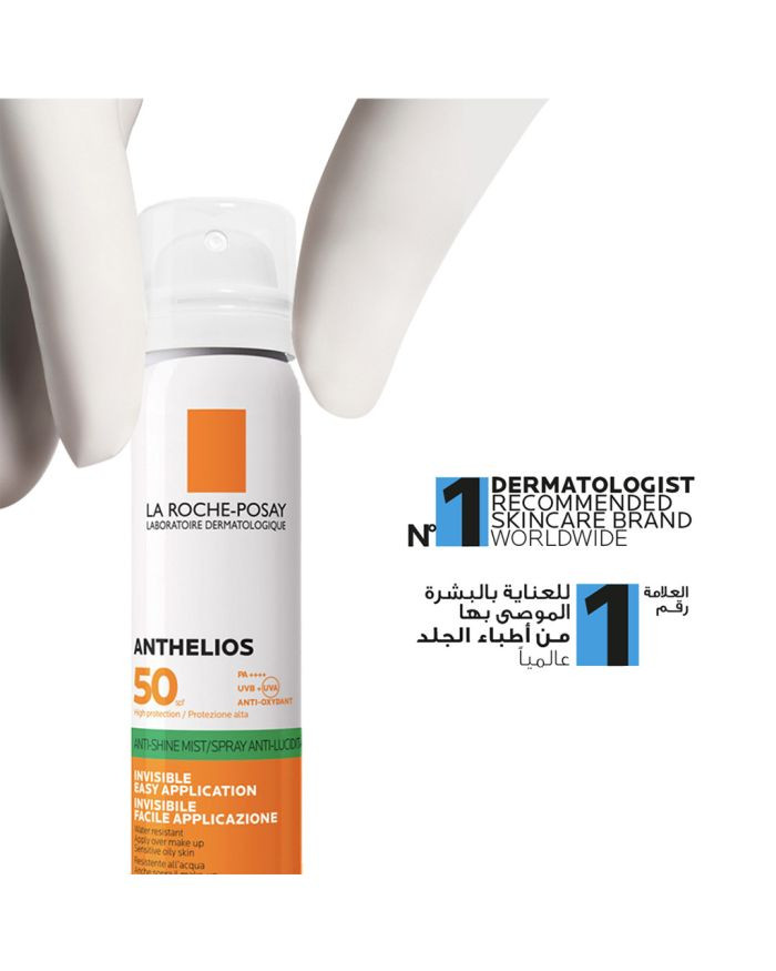 La Roche-Posay Anthelios Invisible Fresh Mist SPF50 provides a broad spectrum and high protection (UVA, UVB) and helps protect against some infrared and pollution. Specially formulated for oily and blemish-prone skin types, La Roche-Posay's Anthelios Invisible Anti-Shine SPF50+ Face Mist delivers high UVA and UVB protection while helping to minimize the appearance of unwanted shine. XL-protect, broad-spectrum protection filter is a powerful blend of UV filters and antioxidants that goes above broad-spectrum UVA and UVB protection to shield against damage from other skin aggressors such as infrared and pollution. Airlicium™, a mattifying micro-particles that immediately melt into skin and control all sources of shine (sebum, sweat and humidity). Glycerin helps to hydrate and moisturize the skin after initial application. The water-resistant formula applies as an ultra-fine mist, that dries down to an invisible, matte finish. Enriched with Airlicium, the spray acts as a protective film over the skin that still allows your skin to breathe. Spritz on bare skin or over makeup for long-lasting protection that can be topped up throughout the day. For more than 25 years, Anthelios have been pioneers in terms of breakthrough innovations: UVA filters, broad spectrum protection, textures & technologies. Clinically proven efficacy on sun sensitive and intolerant skin. Anthelios efficacy has been demonstrated by 31 clinical studies carried out in vivo by world renowned dermatological experts in photo-dermatology.
