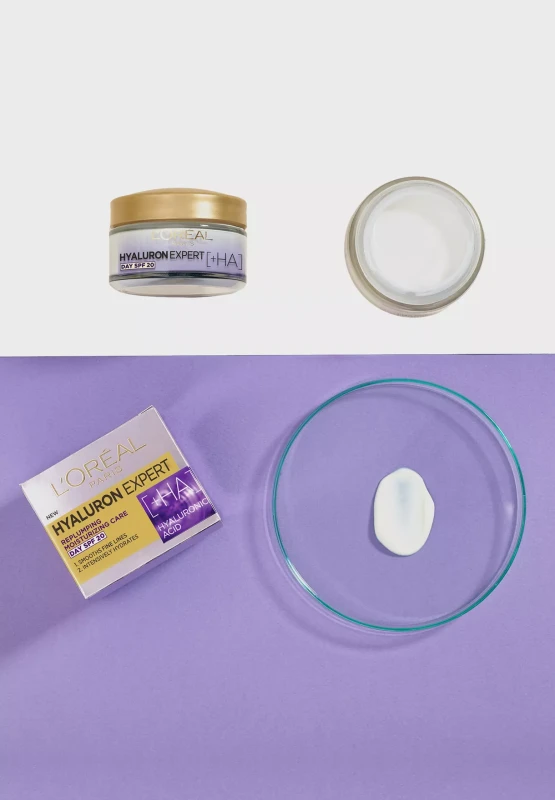 To intensely re-plump your skin, L'oreal Paris Hyaluron Expert SPF20 Day Cream is filled with pure hyaluronic acid. With its ability to moisturize and fill up skin, hyaluronic acid gives you a healthy-looking glow. It helps cover up dark spots on the face by making the skin appear brighter. It can assist in drawing moisture from the environment above and the dermis below into the epidermis. Leading scientists and skin experts from around the world helped develop and test this product. Utilize the entire hyaluron expert range to give your skin the plumped appearance it deserves.