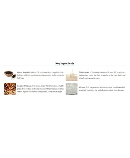 Hair Strengthening: Enriched with the power of Onion Oil, this shampoo helps strengthen hair from the roots.