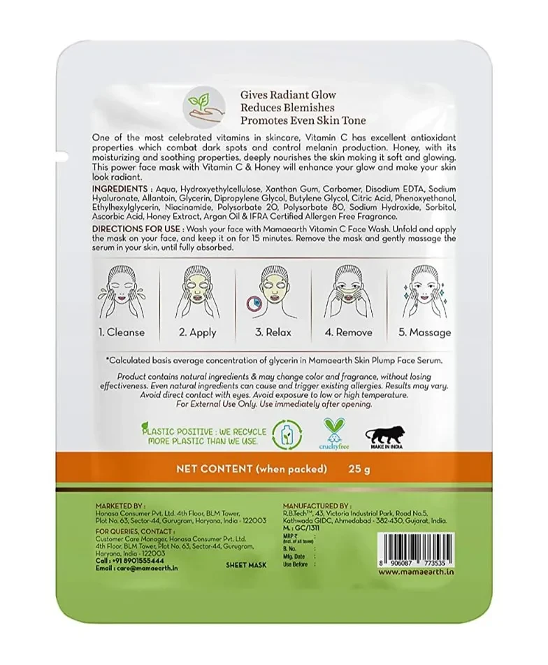 • Vitamin C Boost: Infused with the goodness of vitamin C, this sheet mask helps in brightening and evening out your skin tone, giving you a more radiant complexion.