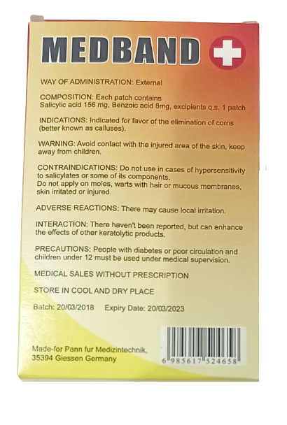 COMPOSITION: Each patch contains Salicyclic acid 156 mg, Benzoic acid 8mg, excipents q.s. 1 patch
