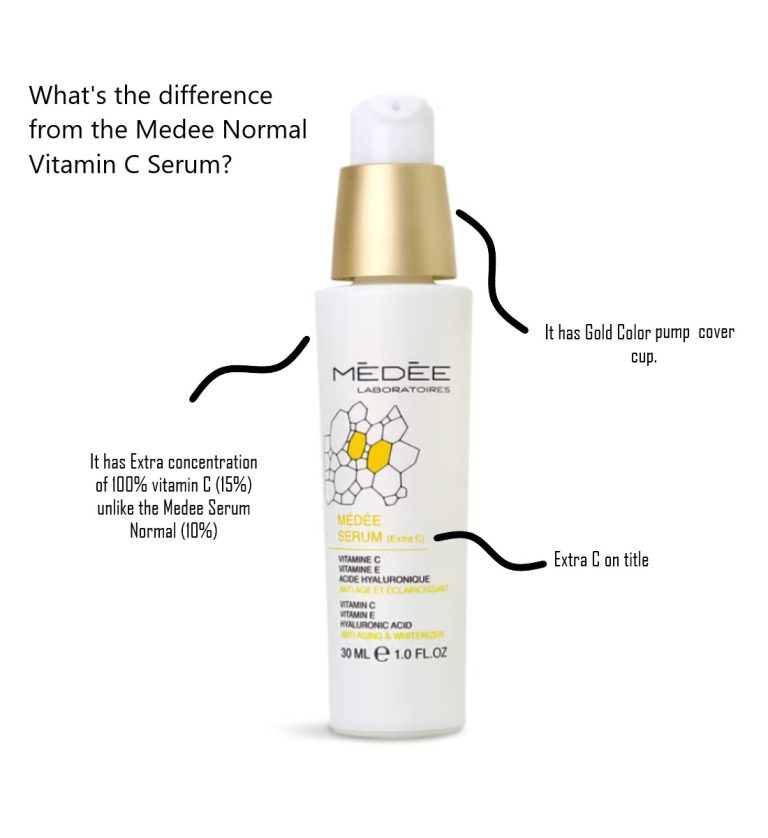 MEDEE SERUM (Extra C) is a potent Vitamin C serum designed to brighten, hydrate, and rejuvenate the skin. It works by reducing pigmentation, boosting collagen, and protecting the skin from free radicals and environmental damage. Its high Vitamin C content helps to restore your skin's natural glow and firmness.