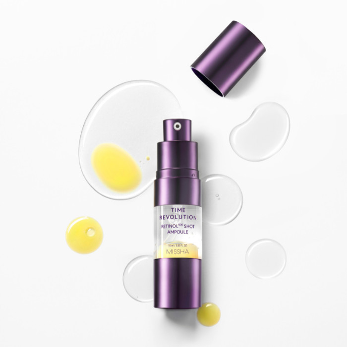- Apply a small amount of the Missha Time Revolution Retinol 500 Shot Ampoule to your face and neck, avoiding the eye area.