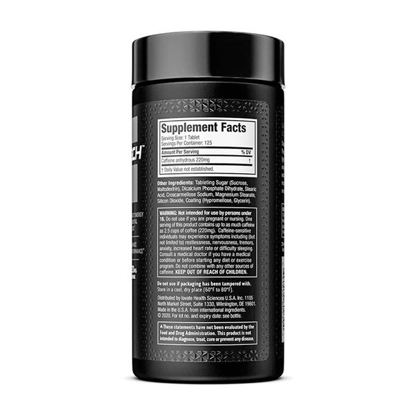 Elevate your energy levels with MuscleTech 100% Caffeine. Each 125-tablet bottle provides a convenient and effective way to boost alertness and focus. With 200mg of pure caffeine per serving, it supports enhanced physical and mental performance. Take as directed to stay energized during workouts or stay focused throughout the day.