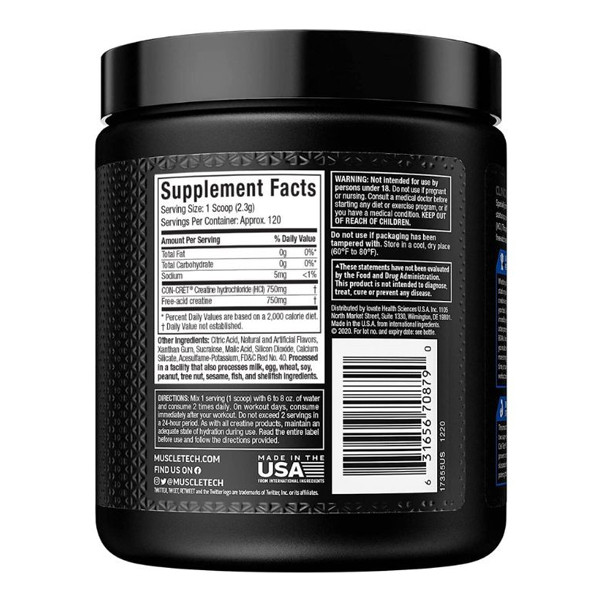 Creatine HCl, Free-Acid Creatine, Natural and Artificial Flavors, Citric Acid, Sucralose, Acesulfame Potassium, Silicon Dioxide, FD&C Red No. 40, FD&C Blue No. 2, etc.