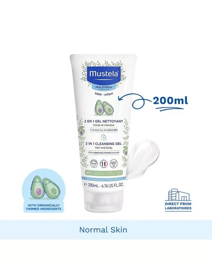 Mustela Baby 2-in-1 Cleansing Gel For Hair & Body cleans while protecting your baby's delicate skin and hair. This plant-based, biodegradable formula leaves skin feeling soft and smooth without any residue or dryness. Mustela 2 in 1 Cleansing Gel is composed of 95% plant-based ingredients and formulated with Avocado Perseose, a patented, natural ingredient specially developed to help protect and hydrate your baby's delicate skin. For guaranteed safety from birth, Mustela skin care products are developed in cooperation with health professionals. Each product must pass a minimum of 450 tests and measures.