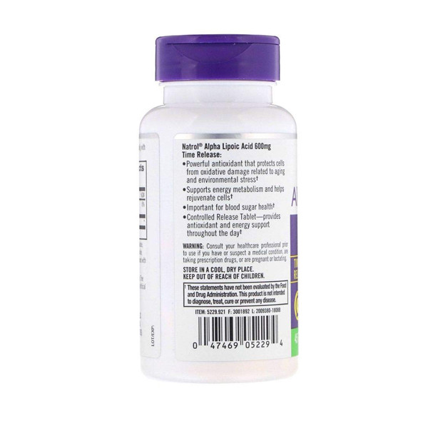 Natrol Alpha Lipoic Acid Antioxidant Protection Tablets provide a potent dose of alpha lipoic acid, a versatile antioxidant that supports overall health and cellular well-being. Alpha lipoic acid plays a crucial role in neutralizing free radicals, which can cause oxidative stress and contribute to various health concerns. This dietary supplement offers a convenient and effective way to enhance your antioxidant defenses and promote optimal health.