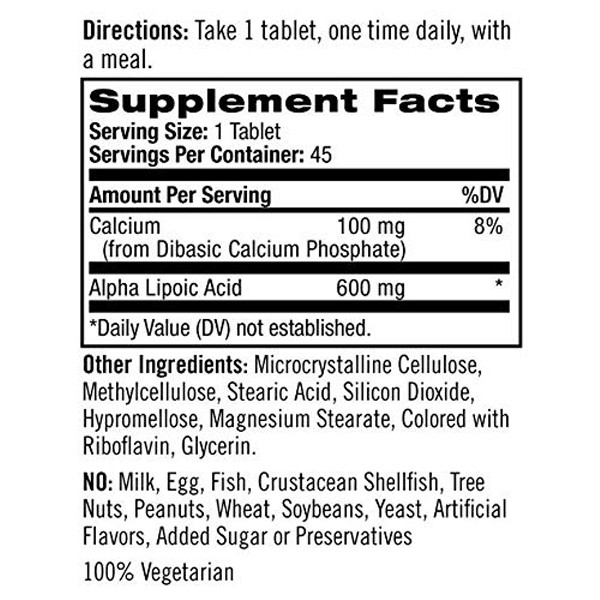 Alpha Lipoic Acid, Dicalcium Phosphate, Cellulose, Silica, Stearic Acid, Magnesium Stearate, Methylcellulose, Cellulose Gum, Glycerin.