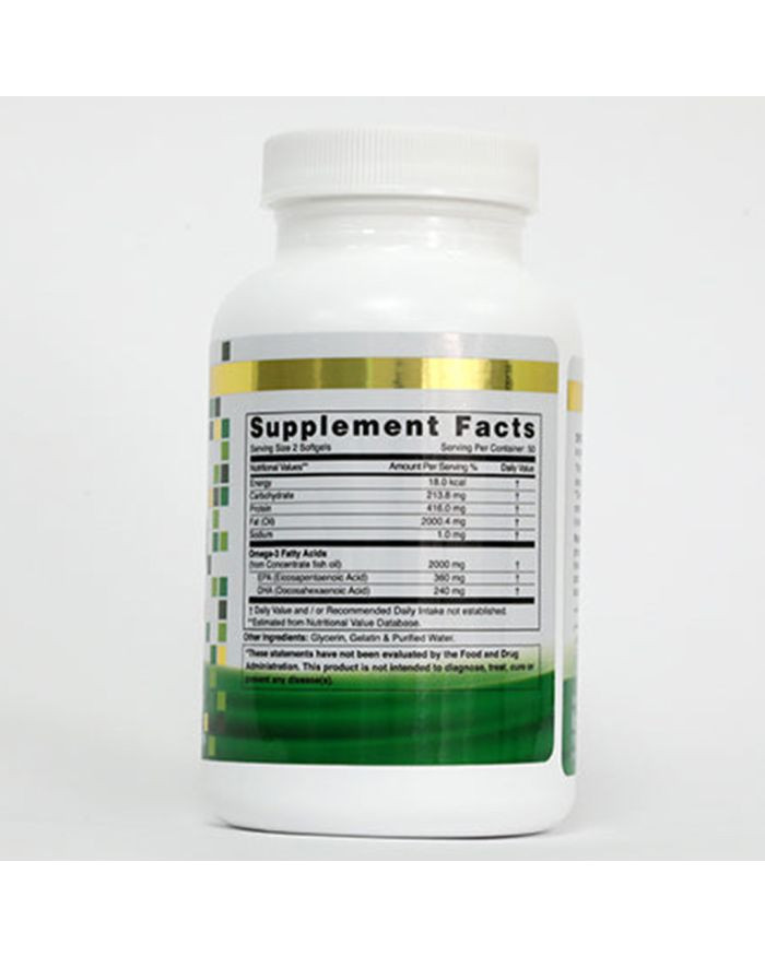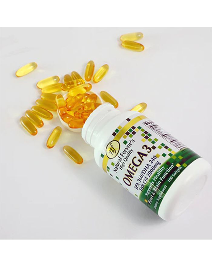 Natural Fervor Omega 3 EPA 360/DHA 240 Fish Oil is formulated to help promote cardiovascular health, help improve cognitive function, help reduce cholesterol and help maintain good health in your body. A source of omega 3 fatty acids for the maintenance of good health. Fish Oil Concentrate is rich in Omega 3 Polyunsaturated Essential Fatty Acids (PUFAs). Fatty acids found in fish oils are Eicosapentaenoic Acid (EPA) and Docosahexaenoic Acid (DHA). Raised triglyceride levels are often associated with coronary heart disease, particularly when cholesterol levels are also raised. Natural Fervor’s High-Quality Omega 3 Soft gels are a rich source of omega-3 essential fatty acids, which promote a healthy cardiovascular system and support heart, brain, and joint health. Eicosapentaenoic acid (EPA) and Docosahexaenoic Acid (DHA) help to lower bad cholesterol (LDL) and triglyceride levels. Raised triglyceride levels are often associated with coronary heart disease, particularly when cholesterol levels are also raised. Consumption of EPA and DHA in large quantities are highly beneficial. More recent research has established that fish oils play a crucial role in the prevention of atherosclerosis, heart attack, depression, and cancer. Clinical trials have shown that fish oil supplementation is effective in the treatment of many disorders including rheumatoid arthritis, diabetes, ulcerative colitis, and Raynaud’s disease. Omega-3 supplements are as important as a good multivitamin for preventing disease and maintaining optimal health, and should be part of one’s daily routine.