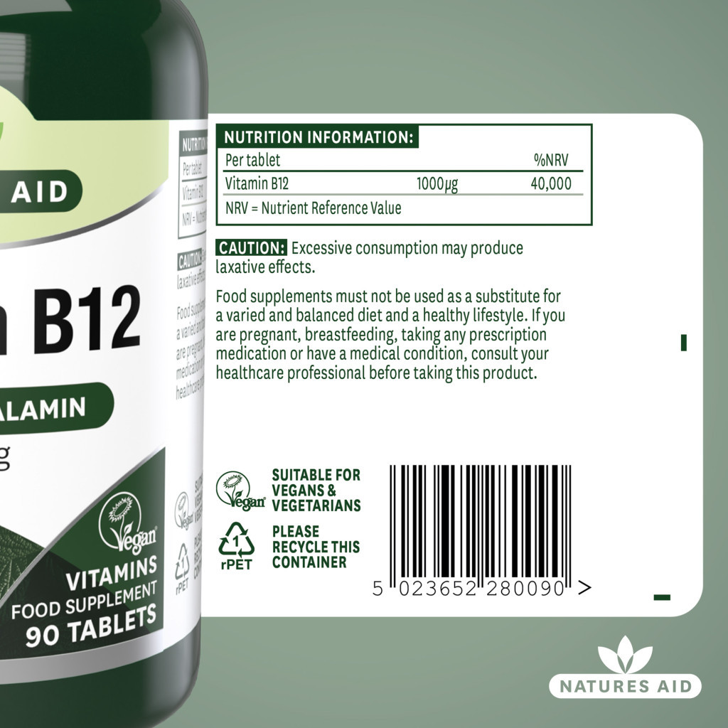 Why Choose Natures Aid Vitamin B12 Sublingual 90 Tablets 1000mcg: