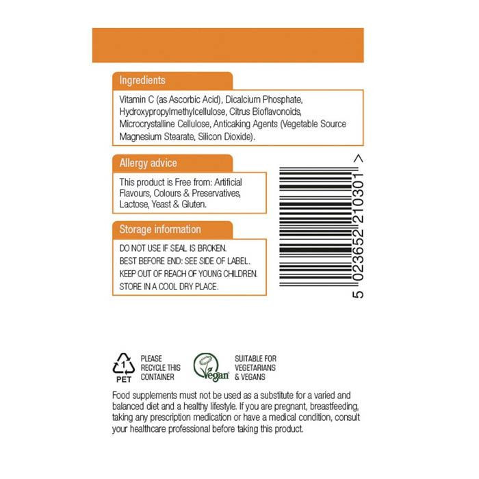 Ingredients of Natures Aid Vitamin C Time Release Tablets 30's 1000mg