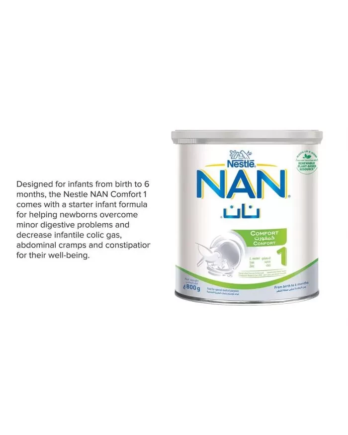 NAN Comfort 1 is a whey dominant starter infant formula, from cow's milk, that is specially designed to help ensure your formula fed infant receives balanced, high quality nutrition. NAN Comfort 1 is nutritionally complete for healthy infants from birth.
