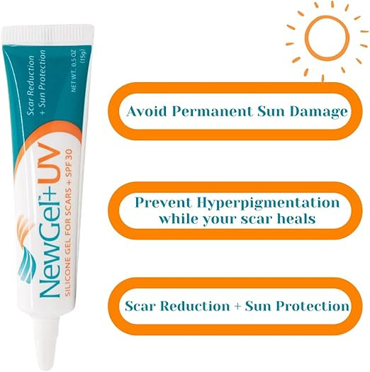 NewGel+UV Advanced Silicone Scar Gel is a revolutionary scar treatment designed to improve the appearance of both old and new scars. Infused with SPF30 mineral sunscreen, this gel offers dual benefits by protecting scars from harmful UV rays and promoting optimal healing. Ideal for facial scars exposed to the sun, this 15-gram tube is perfect for daily use.