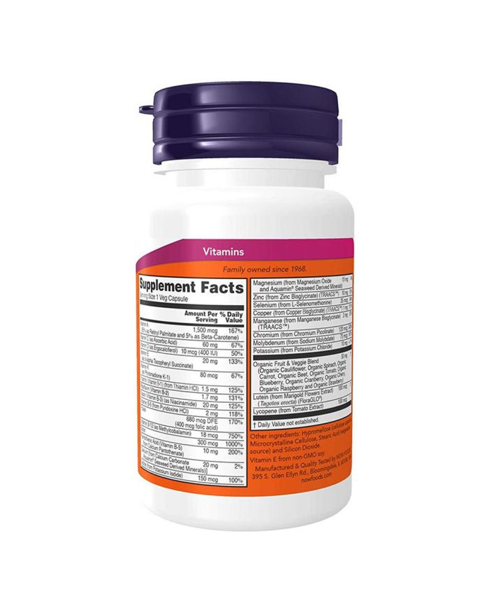Now Daily Vits Multivitamin & Mineral Tablet is a special blend of vitamins and minerals that helps to provide all necessary nutrients daily. Multiple vitamins help to bridge the nutrient gap in our daily diets. In today's world of processed foods and fast-paced lifestyles, many of us do not get the daily recommended allowance of vitamins, minerals and other nutrients. Multiple vitamins can help fill in the areas lacking in our diets, and are formulated to provide a broad range of nutrition. These daily vitamins deliver antioxidants such as zinc and vitamins E and C for immunity support, and energy supplements such as B vitamins to support your daily needs. The formula also contains vitamins involved in muscle function and metabolism, to help your body process fats, carbohydrates and proteins. Each tablet provides a comprehensive supply of 20+ essential vitamins, minerals and antioxidants that help maintain normal vision, bones, normal heart function, immune system, nervous system, normal collagen production, skin function, cartilage, bone, blood vessels, gums and teeth. It also contains vital nutrients for normal mental performance, energy metabolism, cognitive function and to help reduce fatigue and exhaustion.