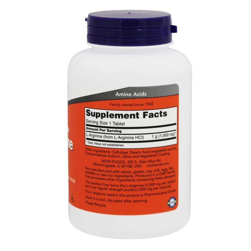 - Dosage: Take 1 NOW L-Arginine 1000 mg tablet 1 to 3 times daily, preferably between meals or on an empty stomach.
