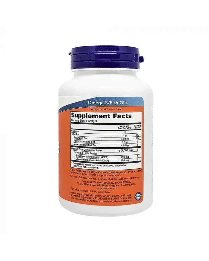 Now Omega-3 180 EPA/120 DHA 100 Softgels uses the natural fish oil concentrate which is manufactured under strict quality control standards. It is tested to be free of potentially harmful levels of contaminants (i.e. mercury, heavy metals, PCB's, dioxins, and other contaminants).