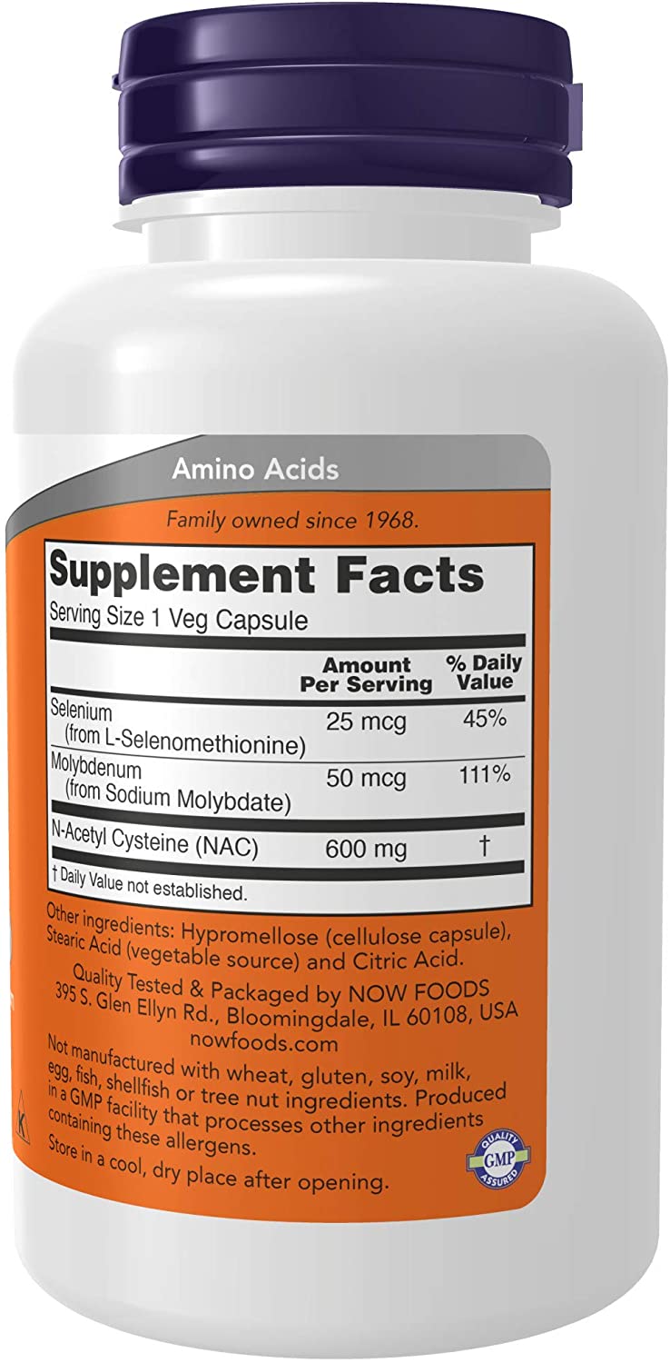 NOW SUPPLIMENTS,NAS (N-ACETYL-CYSTEINE) 600 MG WITH SELENIUM & MOLYBDENUM 100 VEG CAPSULES