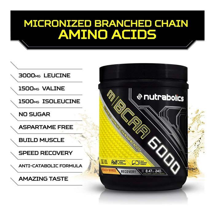 Key Benefits of Nutrabolics 240g BCAA 6000 Peach Mango: