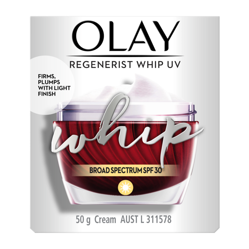 Use Olay Regenerist Whip Moisturiser with SPF30 in the morning on cleansed skin, after any targeted treatments.