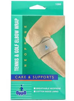 The OPPO Tennis and Golfer’s Elbow Wrap is designed with a neoprene rubber layer sandwiched between durable cotton and nylon laminates to retain body heat. It is recommended to help relieve pain from elbow injuries, tennis elbow and golfer’s elbow.