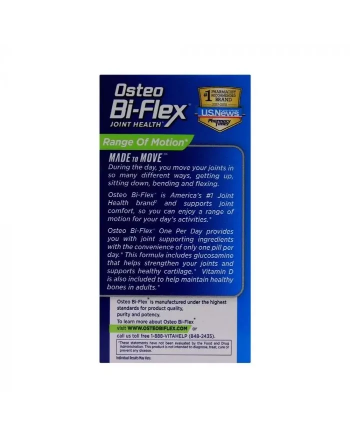 Osteo Bi Flex Joint Care Tablet supports joint comfort so you can enjoy a range of motion for your day's activities. Osteo Bi-Flex One Per Day provides you with joint supporting ingredients with the convenience of only one pill per day. This formula includes glucosamine that helps strengthen your joints and supports healthy cartilage. Vitamin D is also included to help maintain healthy bones in adults.