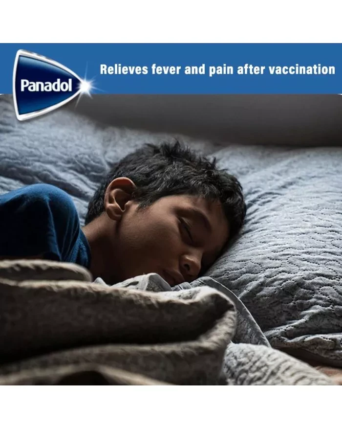 Relieves fever and pain after vaccination