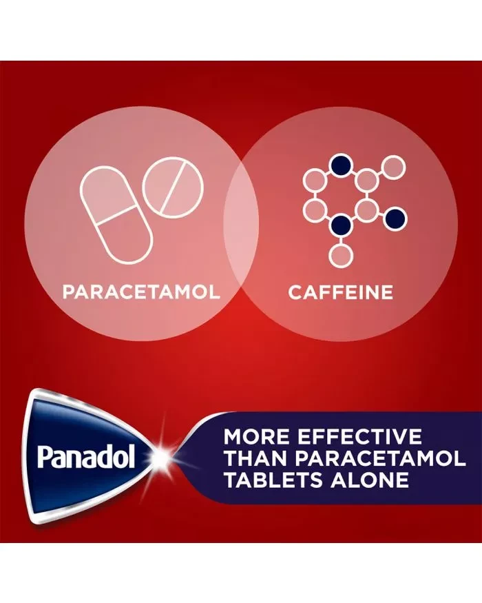 Panadol Extra Optizorb Tablets with the combination of paracetamol 500 mg and caffeine 65 mg, along with the advanced Optizorb technology fights tough pain including headache and period pain, it also provides back pain relief (and including lower back), tooth pain relief, neck pain relief and muscle pain relief. The combination of ingredients in Panadol Extra provides up to 37% more powerful relief than standard paracetamol, providing you with effective pain relief that allows you to stay on top of your day-to-day tasks. Each caplet contains 500 mg paracetamol and 65 mg of caffeine.