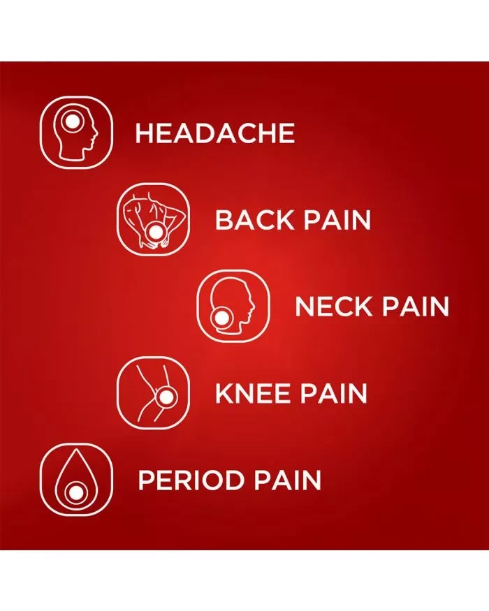 Fights five types of tough pain: headache, back pain, neck pain, knee pain & period pain.