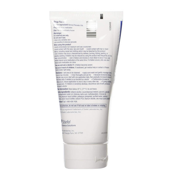 Ingredients: Active Ingredient: Benzoyl Peroxide 10%. Inactive Ingredients: Cetearyl Alcohol, Cocamidopropyl Betaine, Glycerin, Glycolic Acid, Hydrogenated Castor Oil, Imidurea, Lactic Acid, Methylparaben, Mineral Oil, PEG-14M, Potassium Lauryl Sulfate, Potassium Phosphate, Purified Water, Sodium Hydroxide, Sodium Lauryl Sulfate, Sodium PCA, Titanium Dioxide, Zea Mays (Corn) Starch.