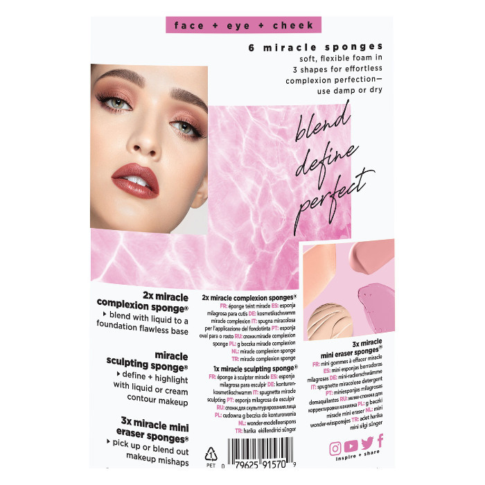 The Real Techniques Miracle Sponges 6s are for external use only. If irritation or discomfort occurs, discontinue use immediately and consult a dermatologist. The manufacturer is not responsible for any adverse effects caused by misuse, failure to follow care instructions, or damage caused by improper handling or cleaning.