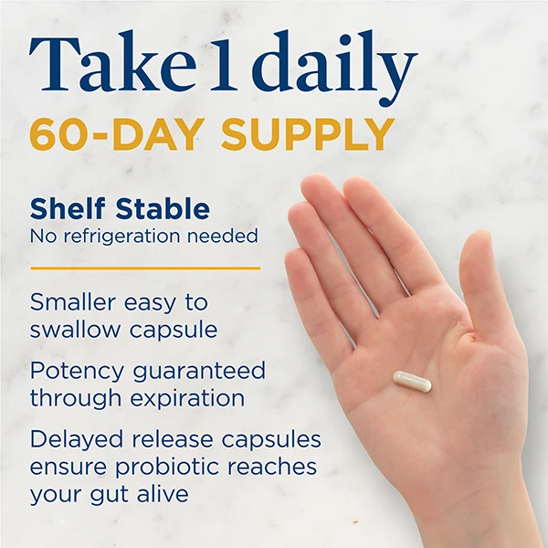 Delayed-Release Formula: The once-daily capsule features a delayed-release design to enhance the survival of probiotic cultures through the digestive system, ensuring maximum effectiveness.