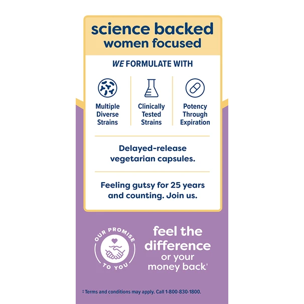 Balances Vaginal Bacteria and Yeast Levels: Women's Care Probiotic supports the balance of vaginal bacteria and yeast, promoting optimal women's health.