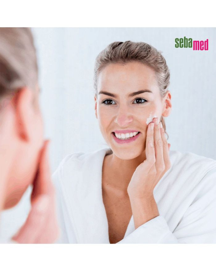 Cleanse with face and body wash before applying sebamed moisturizing cream.