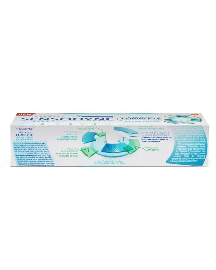 With its stannous formulation, Sensodyne Advanced Complete Protection Extra Fresh helps protect sensitive teeth by relieving sensitivity, strengthens enamel and helps maintain healthy gums. It also has a fresh minty taste to leave your mouth feeling clean and fresh.