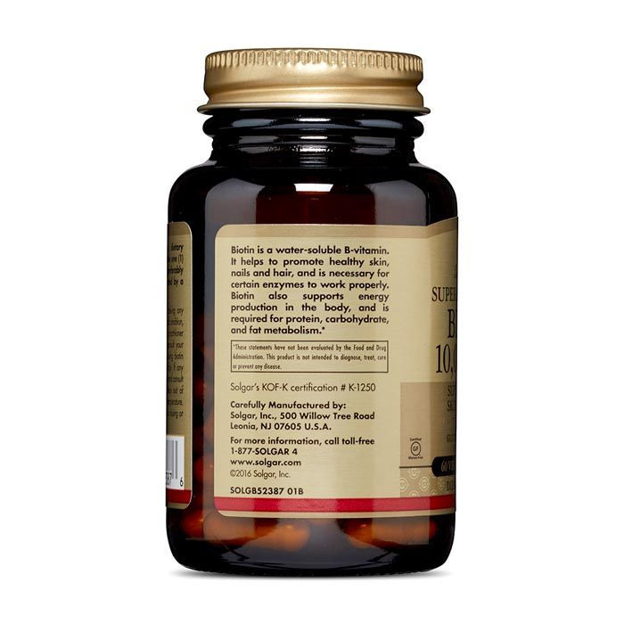 Biotin is a water-soluble B vitamin; This formulation provides 10,000 mcg of biotin per serving. Biotin helps to promote healthy skin, nails, and hair and is necessary for certain enzymes to work properly. Biotin also supports energy production in the body and is required for protein, carbohydrate, and fat metabolism.
