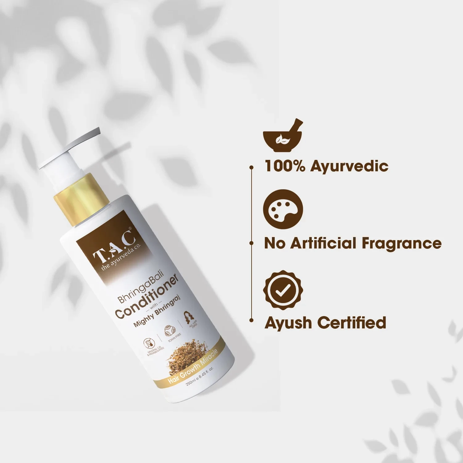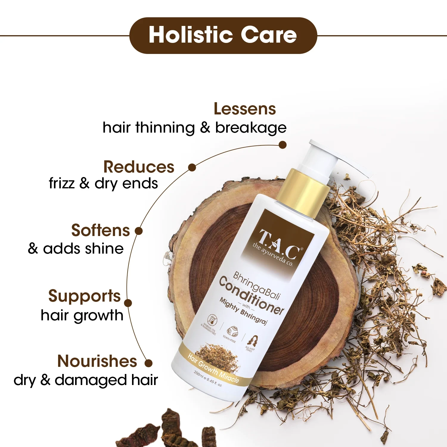 Indulge your hair in the regal care it deserves with T.A.C BhringaBali Hair Conditioner. This specially crafted Ayurvedic elixir is your answer to strong, voluminous, and healthy hair. Enriched with the essence of Bhringraj, Amla, and Ashwagandha, this conditioner provides deep nourishment, tames frizz, and imparts a brilliant shine to your tresses.