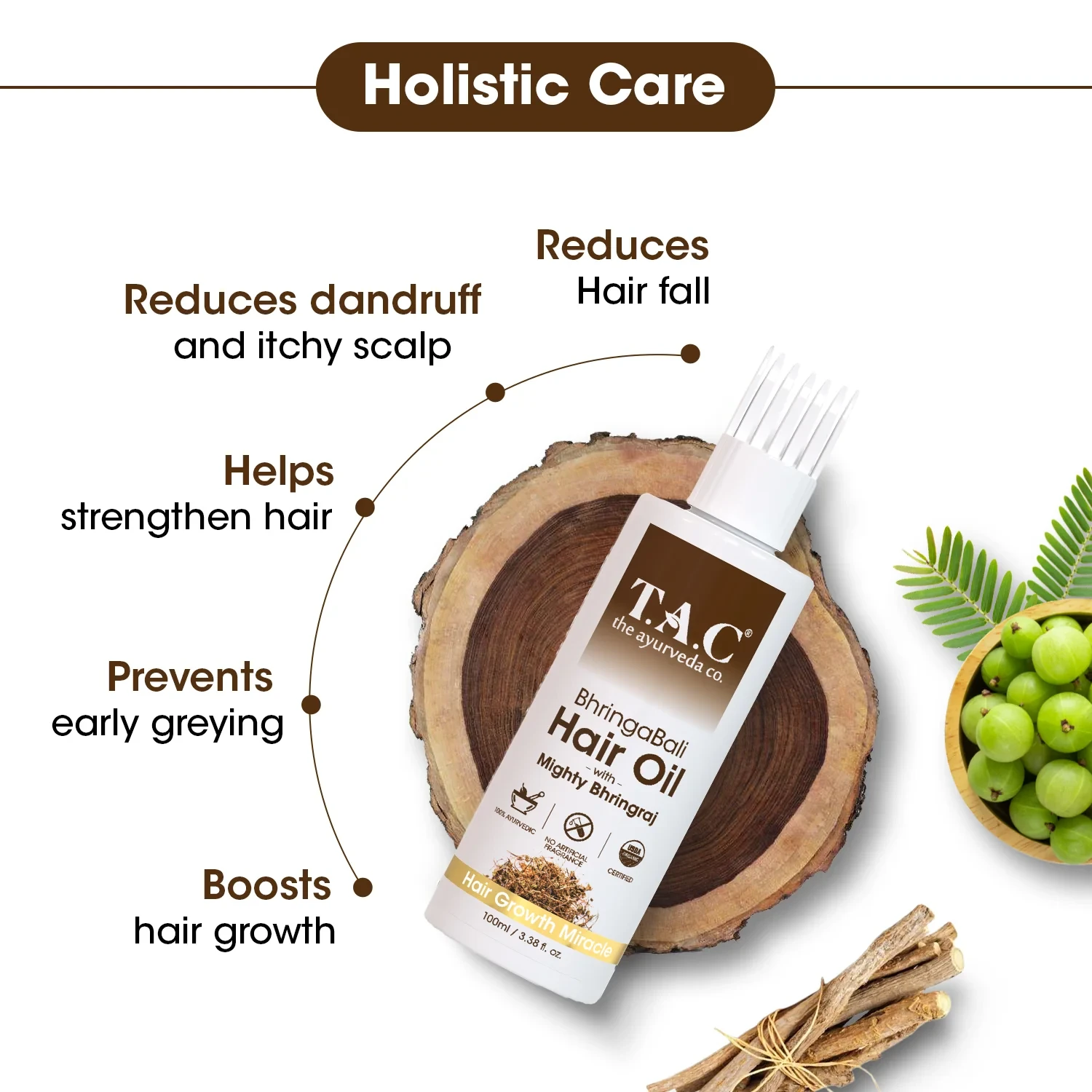 Quality Assurance: T.A.C BhringaBali Hair Oil is crafted with stringent quality standards.