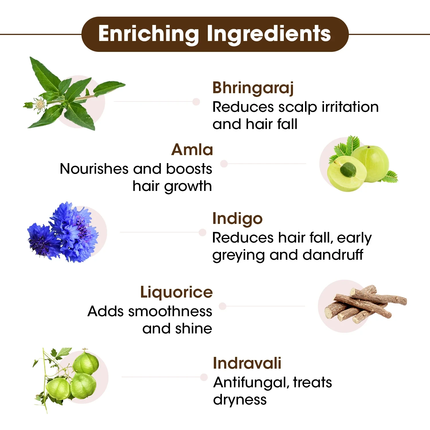 Antibacterial and Antifungal: Liquorice and Indravali contribute antibacterial and antifungal properties, combating dandruff and soothing dry scalp.