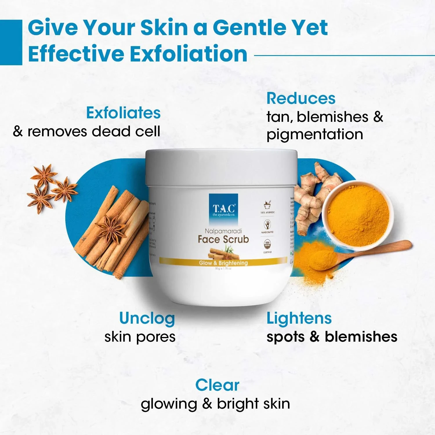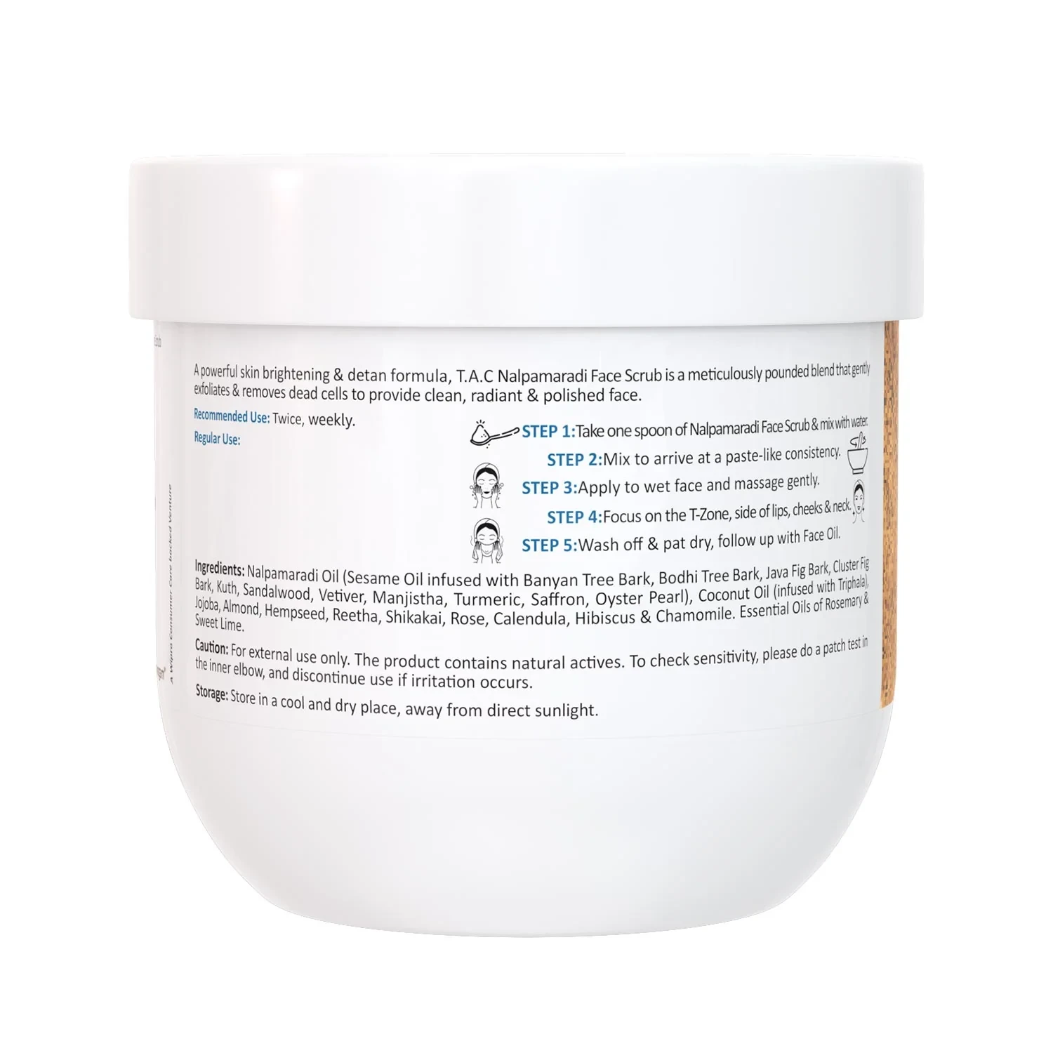 Strike a glow and achieve blemish-free, clear, and healthy skin with TAC's Nalpamaradi Face Scrub. This 100% Ayurvedic scrub is a blend of four ficus tree barks—Banyan, Java Fig, Cluster Fig, and Bodhi. Handpicked and shade-dried, these barks are crushed into powder and blended with natural extracts and essential oils for bright and glowing skin.