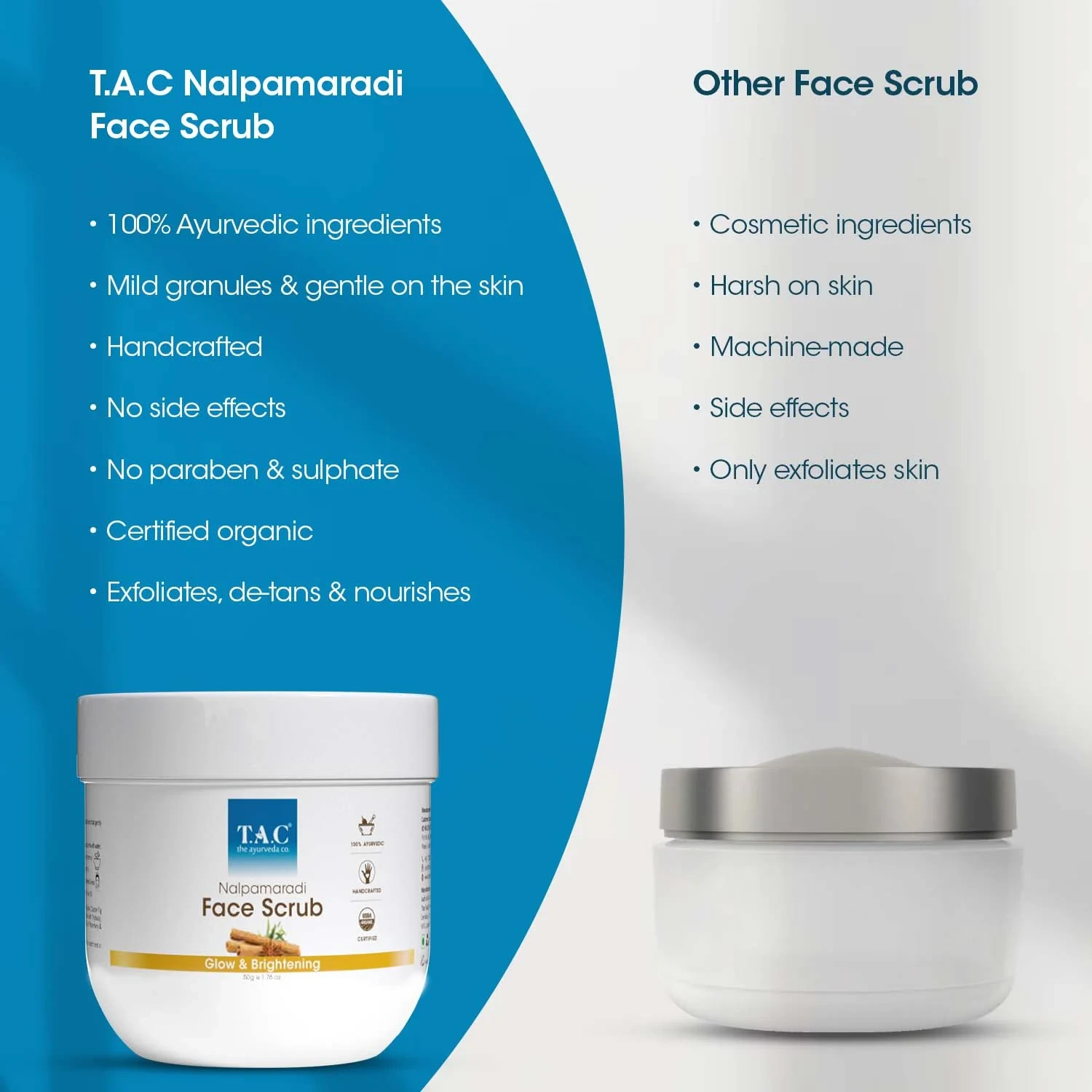 Quality Assurance: Our products, such as TAC's Nalpamaradi Face Scrub, meet stringent quality standards.