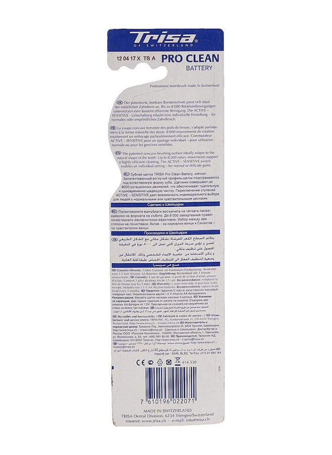 TRISA Pro Advanced Clean Toothbrush Battery is made from high-quality materials and designed to meet rigorous international standards. It provides effective, gentle care for your teeth and gums, ensuring a reliable and long-lasting product.