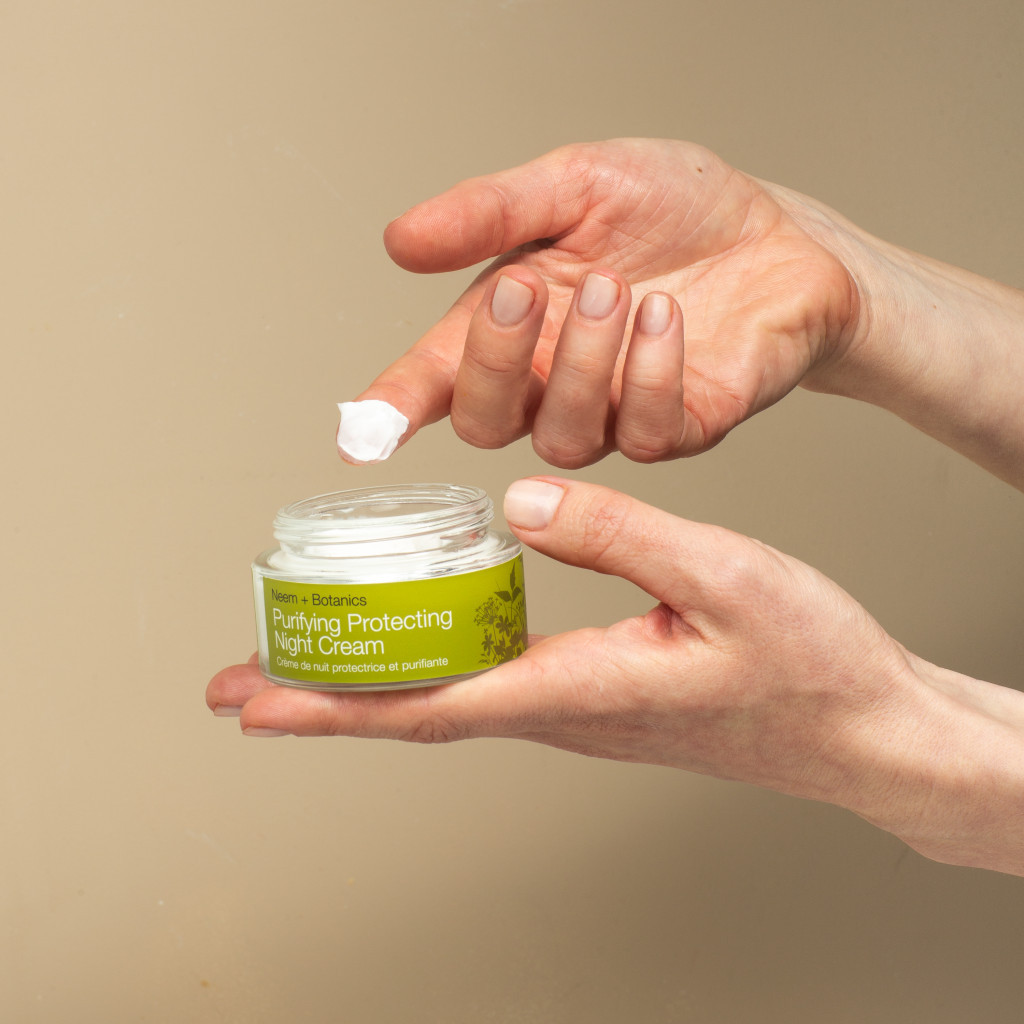 - After cleansing your face thoroughly, apply a small amount of Urban Veda Purifying Night Cream to your face and neck.