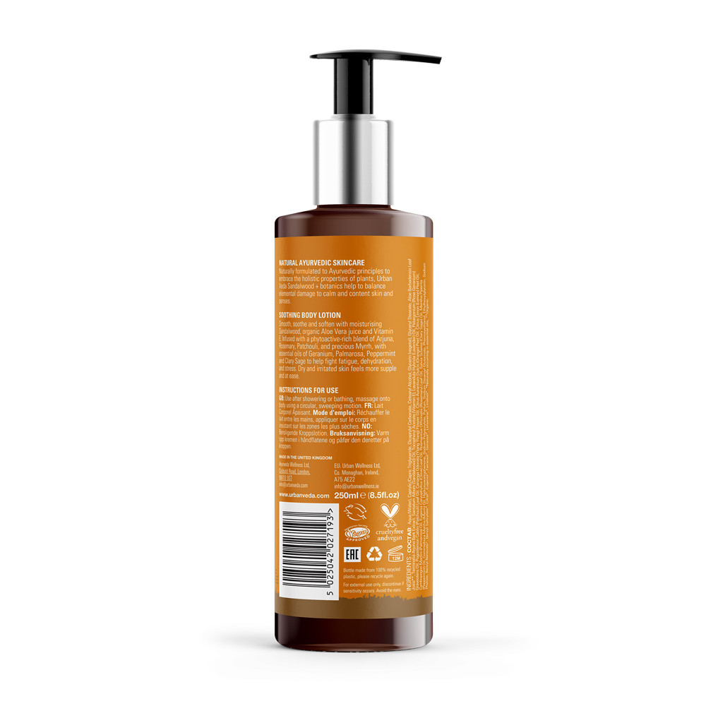 - Apply a generous amount of Urban Veda Soothing Vitamin E Body Lotion to clean, dry skin.