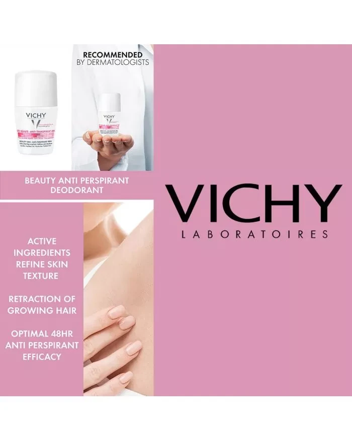 Vichy 48 Hours AntiPerspirant Beauty Deodorant for Women is the first Beautifying 48h antiperspirant treatment that associates LHA and embellishing pearls to space out shaving sessions and refine skin texture. Aluminium Chlorohydrate and patented Perlite, are the best antiperspirant and anti-sweating ingredients for a 48h protection even for the most sensitive skin. For women depilating their underarms and expecting to space out their shaving sessions and beautify their armpits skin with no compromise on antiperspirant efficacy even for the most sensitive skin. LHA refines skin texture and proves its efficacy in growing hair retraction. Reflective pearl provides an instant embellishment of your armpits' skin. It is a modern and feminine perfume with fresh and powdery intimation in quick drying and pleasant texture. Vichy Laboratories empower all women and men to maximize their skin and scalp health at every stage of life. Vichy believes that health is vital. And that it starts with the skin. Vichy's heart is connected to people, to their lives, to their skin. Vichy empowers all women and men, of all ages and phototypes to have a positive impact on their skin and scalp health, at every stage of their life. Discover Vichy's full range of products & treatments online. Care for Your Skin with clinically tested and dermatologically recommended Vichy Products.