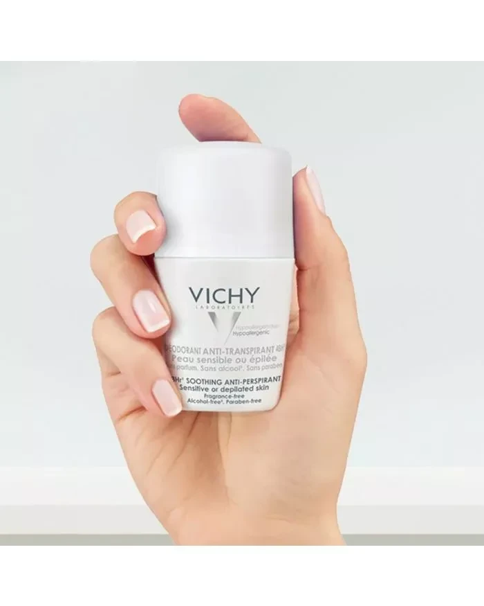 Vichy Deodorant 48 Hour Soothing Anti-Perspirant Roll-On is a gentle and effective solution designed specifically for individuals with sensitive skin. Formulated with care, this deodorant provides long-lasting protection against sweat and odor for up to 48 hours. Its soothing properties make it an ideal choice for those with sensitive underarms, ensuring a comfortable and irritation-free experience. Feel confident and fresh throughout the day with this dermatologically tested and hypoallergenic anti-perspirant.