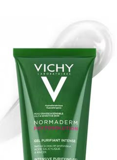Vichy Normaderm Phyto Solution Purifying Cleansing Gel is a daily gel cleanser that purifies and revitalizes the appearance of oily, blemish-prone skin. Perfectly removes impurities including dirt, dust and pollutant particles while clearing clogged pores and blackheads so skin feels cleansed and is left looking fresher, clearer and mattified. In just one month, blackheads appear less prominent and pores look unclogged. Suitable for sensitive skin. Dermatologically tested. Hypoallergenic. Enriched with actives including Salicylic Acid and Zinc Gluconate, in a cleansing base from plant origin. Clinically proven efficacy on excess oil.
