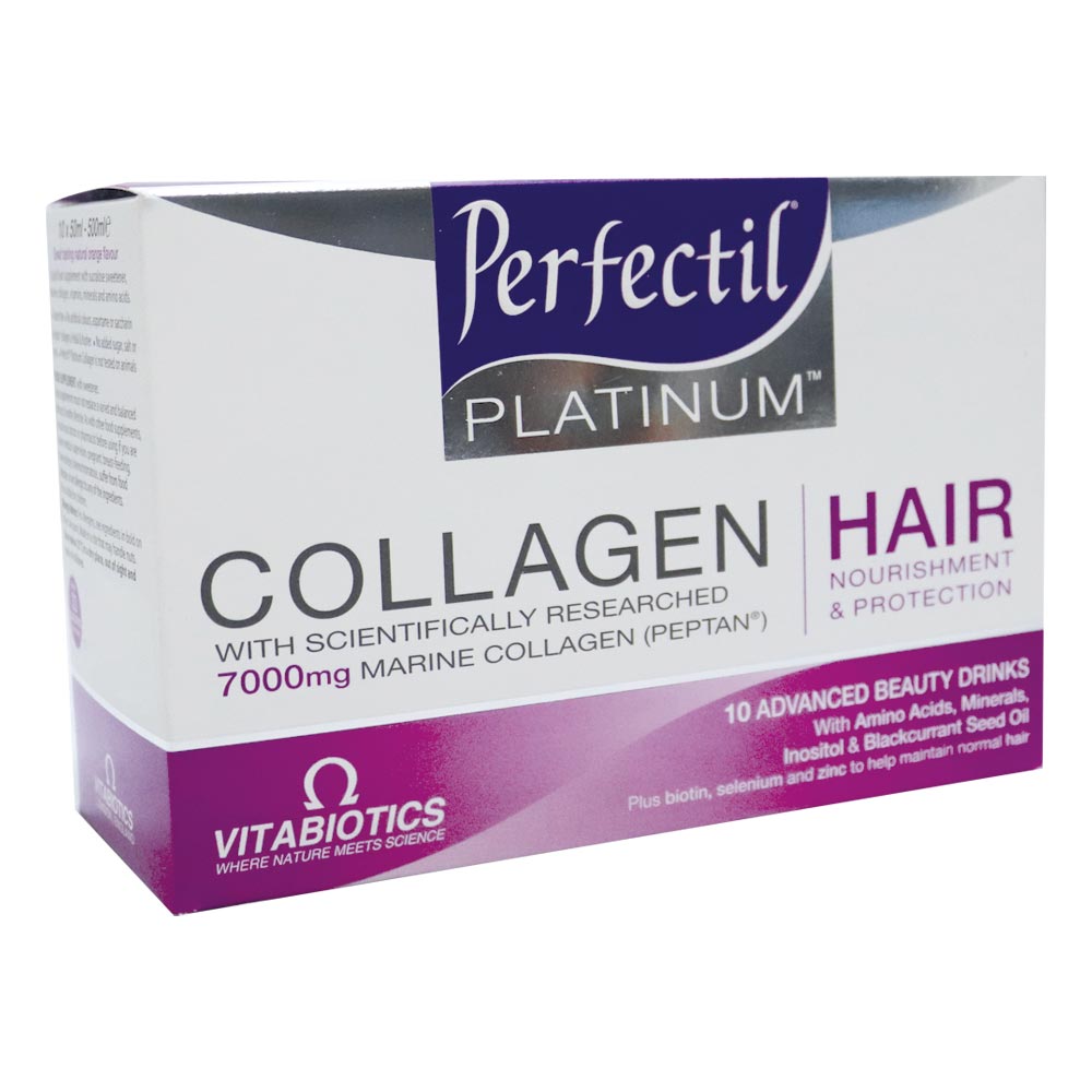 Perfectil Platinum Collagen Skin Drink is an advanced liquid beauty supplement, carefully formulated by Vitabiotics nutritional experts. It provides readily absorbed Peptan marine collagen, which has been scientifically shown to help and support the skin's collagen density.