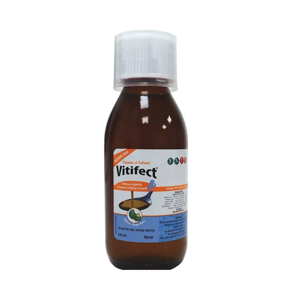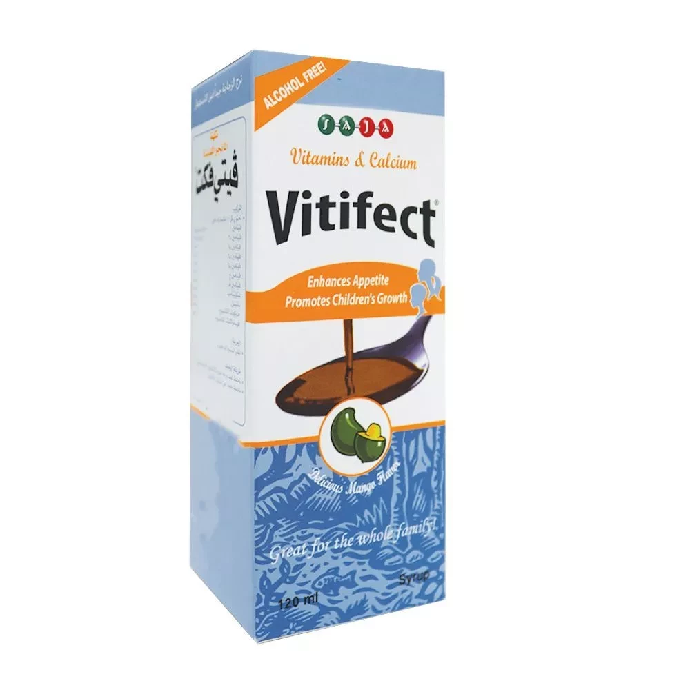 Vitifect Syrup is a well-balanced alcohol-free syrup formula that provides the daily required dose of vitamins and calcium necessary to support healthy growth especially during the growth phase in children, helps to promote appetite, insure healthy bones and teeth, boosts immunity, and also useful when metabolic activity increases during additional stress.