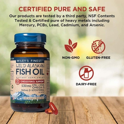 A: Wiley’s Finest uses sustainably sourced, wild-caught fish and molecular distillation for purity, ensuring premium quality Omega-3s for heart and cholesterol support.